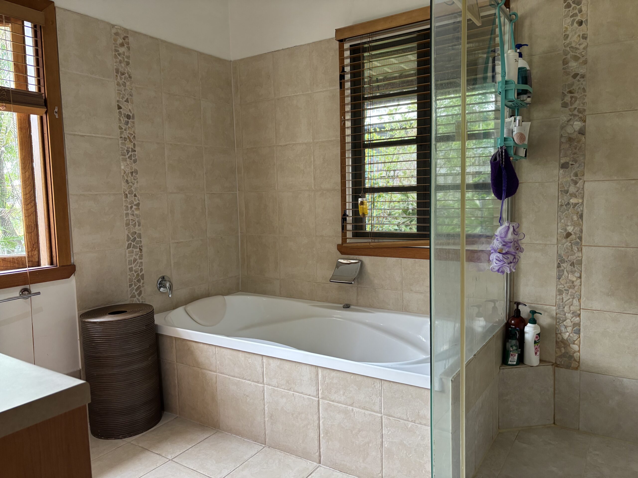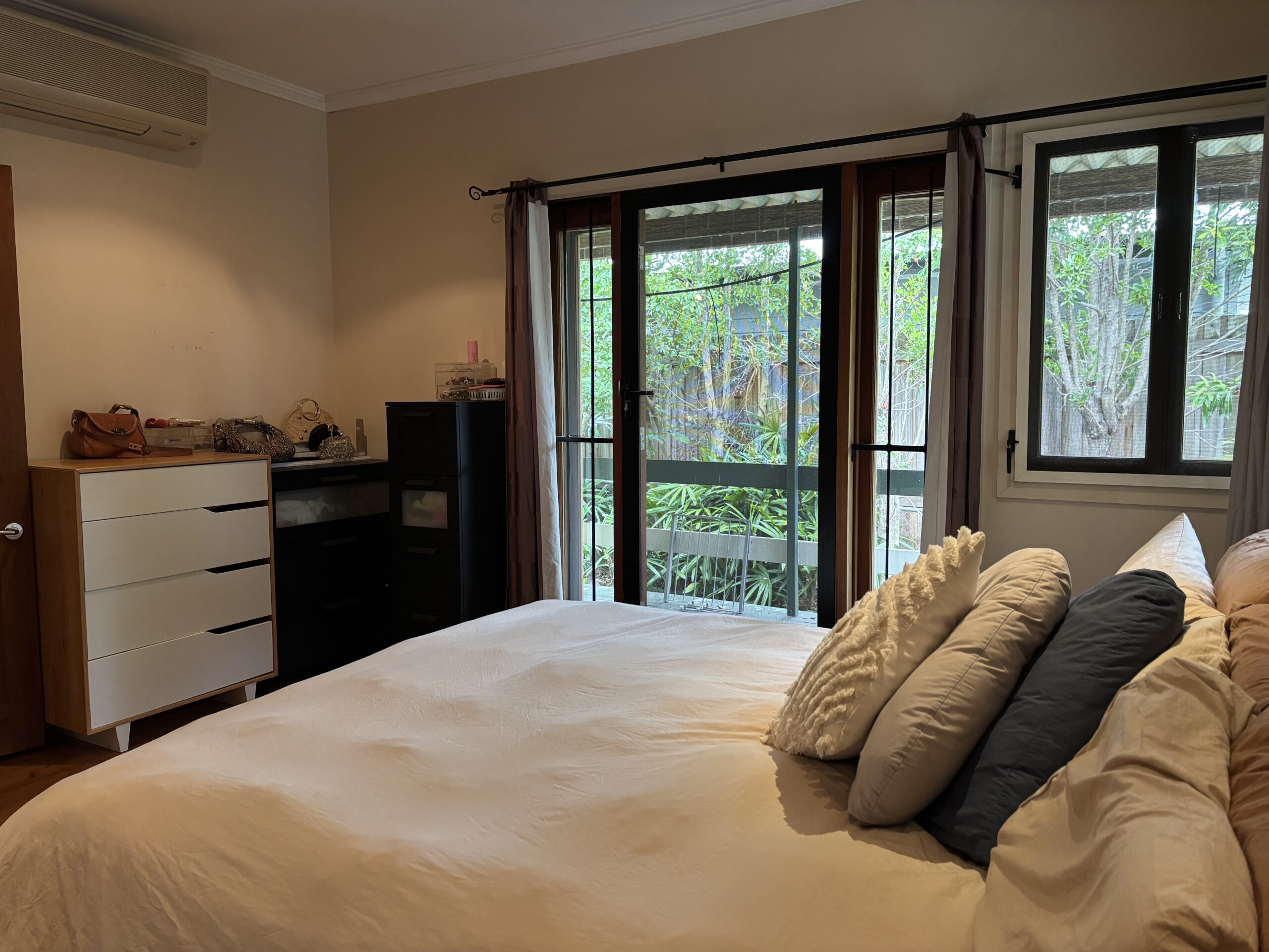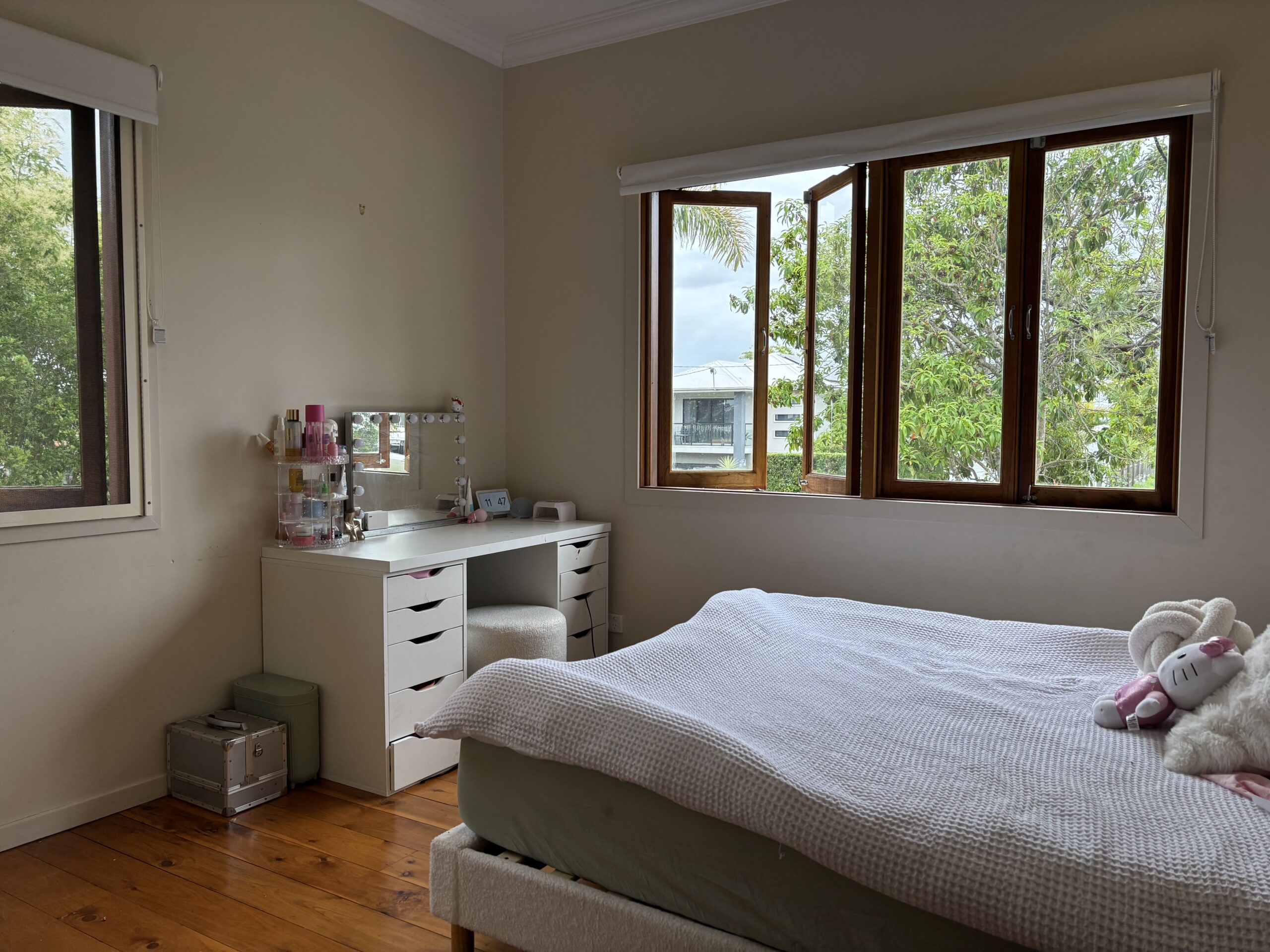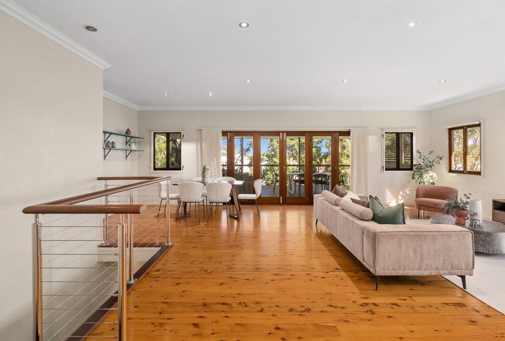 Open it up and you’ve got wide sliding doors flowing straight onto a covered deck, fitted with ceiling fans and louvre-style shutters, perfect for breezy afternoons, long lunches and slow evenings.