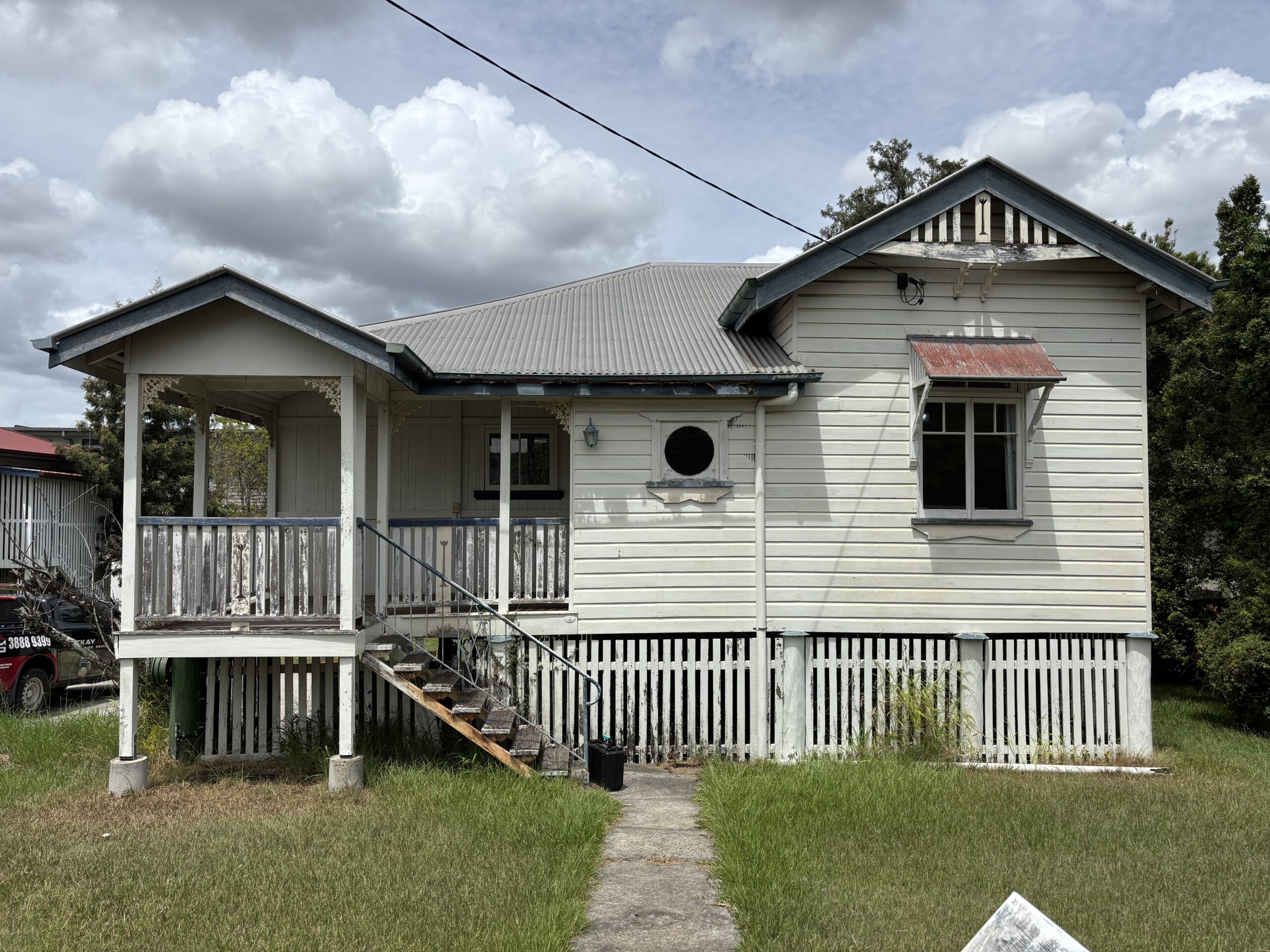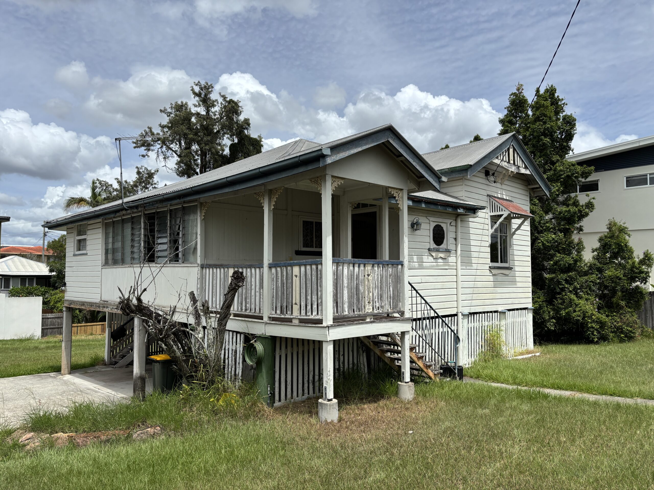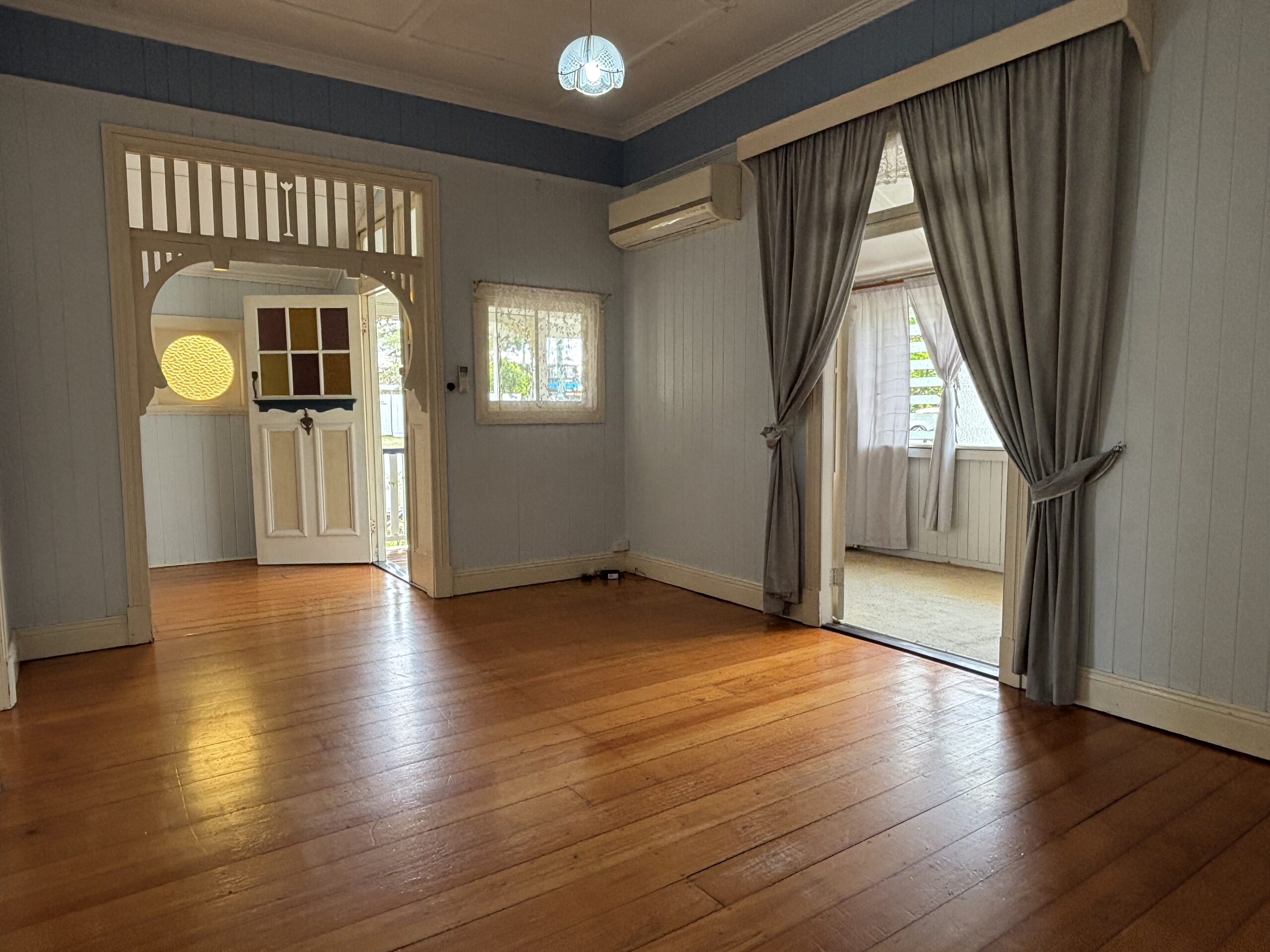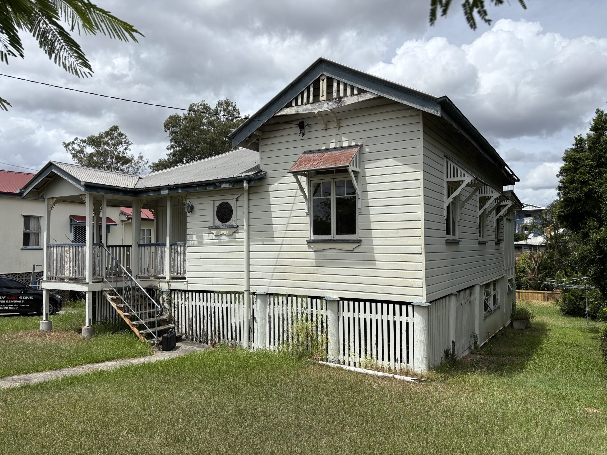 From the street, Maplehurst has that unmistakable Queenslander charm, weatherboard cladding, gabled frontage, sweet veranda entry, and beautiful old school features like window awnings and a standout stained glass round feature window that gives it serious personality.