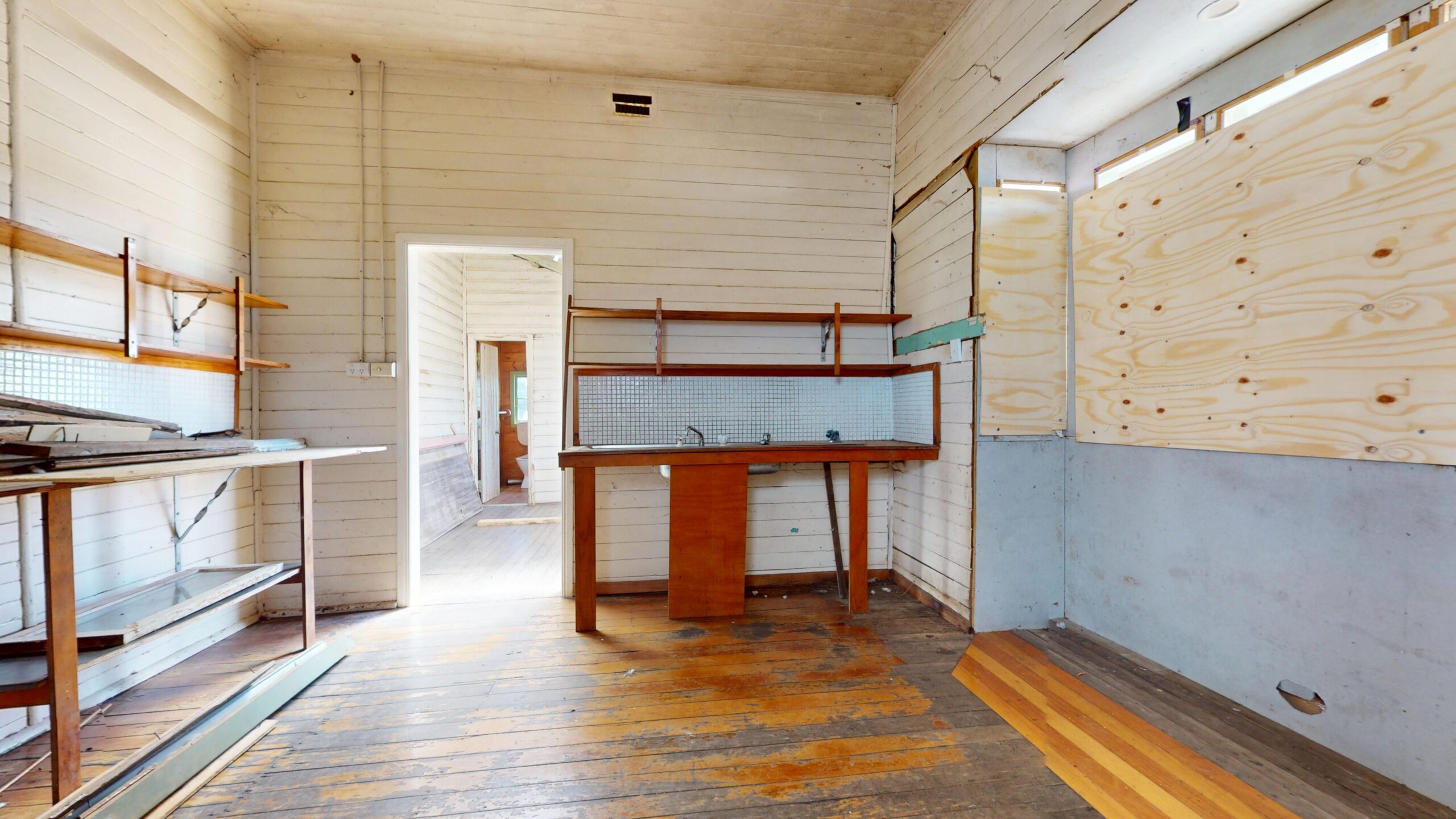Inside, you’ll find high ceilings, hardwood floors, and classic VJ walls throughout. The layout offers great potential, with large bedrooms, a defined living area, and a spacious kitchen ready for redesign. Her standout feature is the generous rear deck, offering plenty of space to expand your living area or create an ideal outdoor retreat.